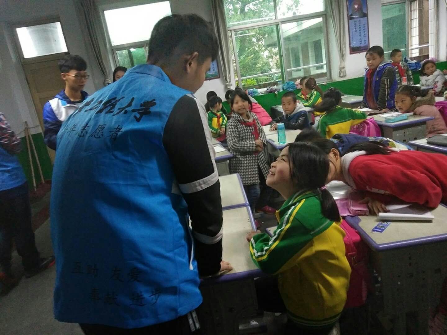 为普及身心健康知识,增强小学生们对生命健康的认识,2017年10月18日下午,服装与艺术设计学院学生会青分队部分志愿者在部长赵岚珺、副部长蔡威威的带领下,来到斜口小学,开展了以“关爱身心健康,为生命喝彩”为主题的支教活动。
