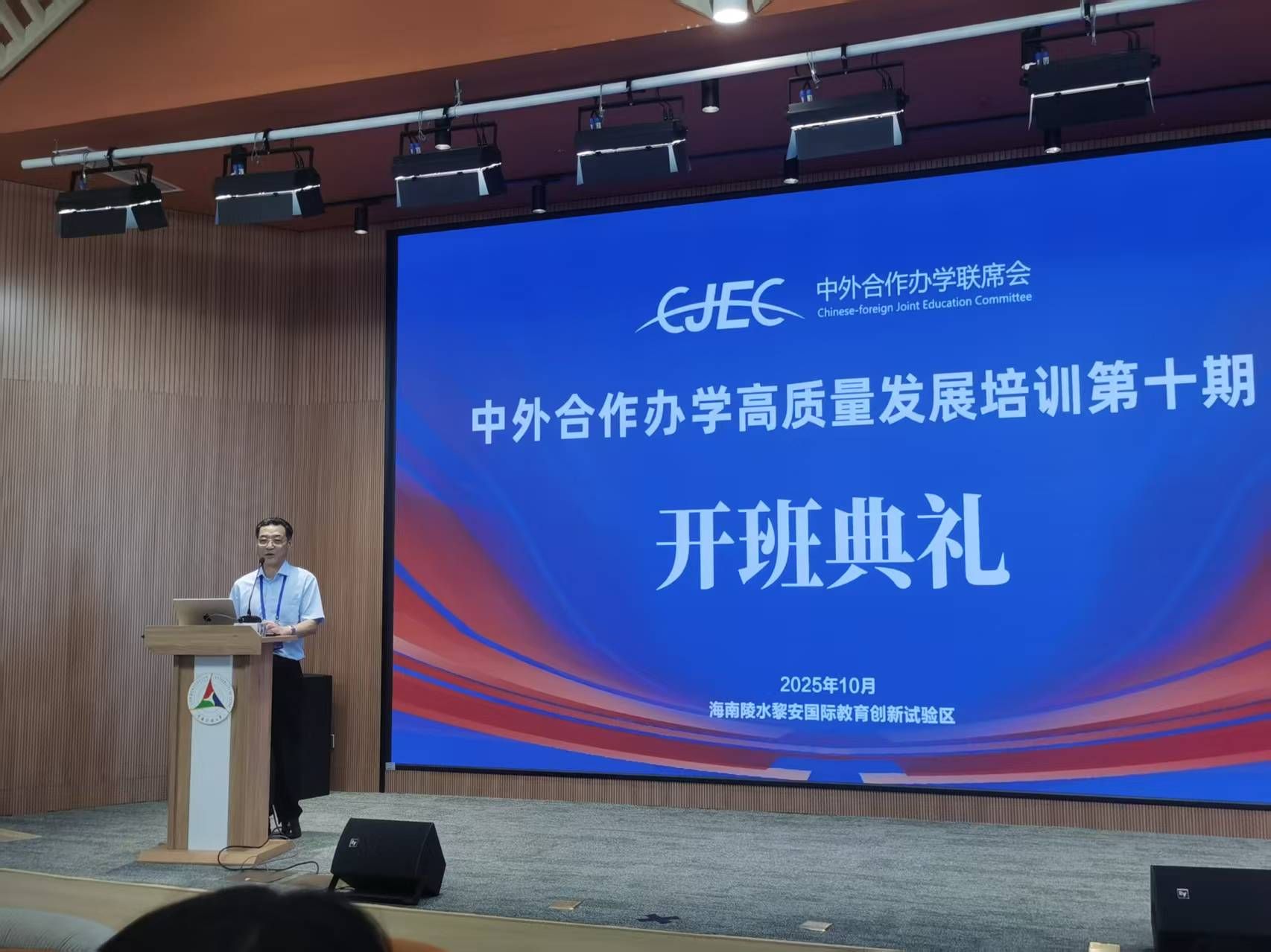 近日,中外合作办学高质量发展第十期培训在海南陵水黎安国际教育创新试验区举办。2025年10月16日至19日,我校国际交流处处长秦伟、服装与艺术设计学院党委书记苏博、副院长王峰及中英合作办学项目组教师代表等参加培训,与全国多所高校代表围绕“打造高水平中外合作办学,建设具有全球影响力的重要教育中心”这一主题进行深入研讨。