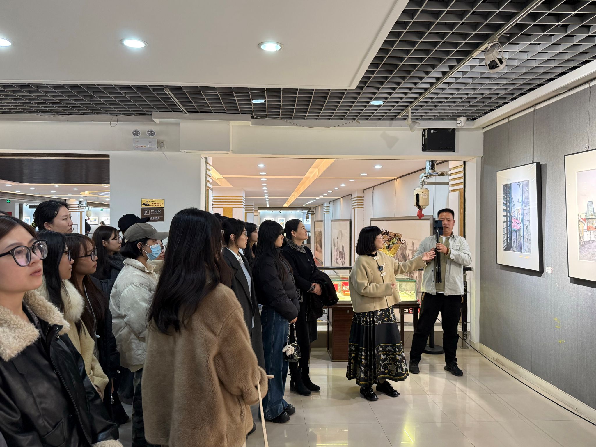 2025年11月22日下午,服装与艺术设计学院党委组织本科生造型党支部、研究生机械、美术学党支部、教师造型艺术系党支部共50余名师生党员,赴陕西省亮宝楼艺术馆开展“艺心向党建功路·水彩新篇映初心”主题党日活动,集体观摩“共赴山海——杨毅柳、曾军梅等五人水彩新作精品展”。