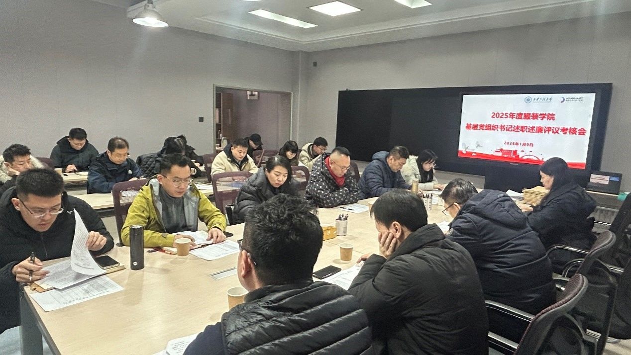 2026年1月9日,服装与艺术设计学院在金花校区召开 2025 年度党支部书记抓党建述职述廉评议会。学院党委委员,党支部书记及党员代表参加会议,会议由学院副处级组织员吴艳杰主持。