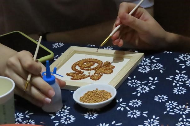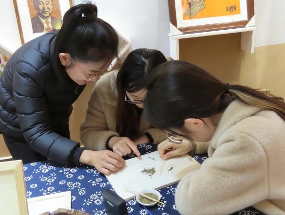 (实践队员体验糜粘画)