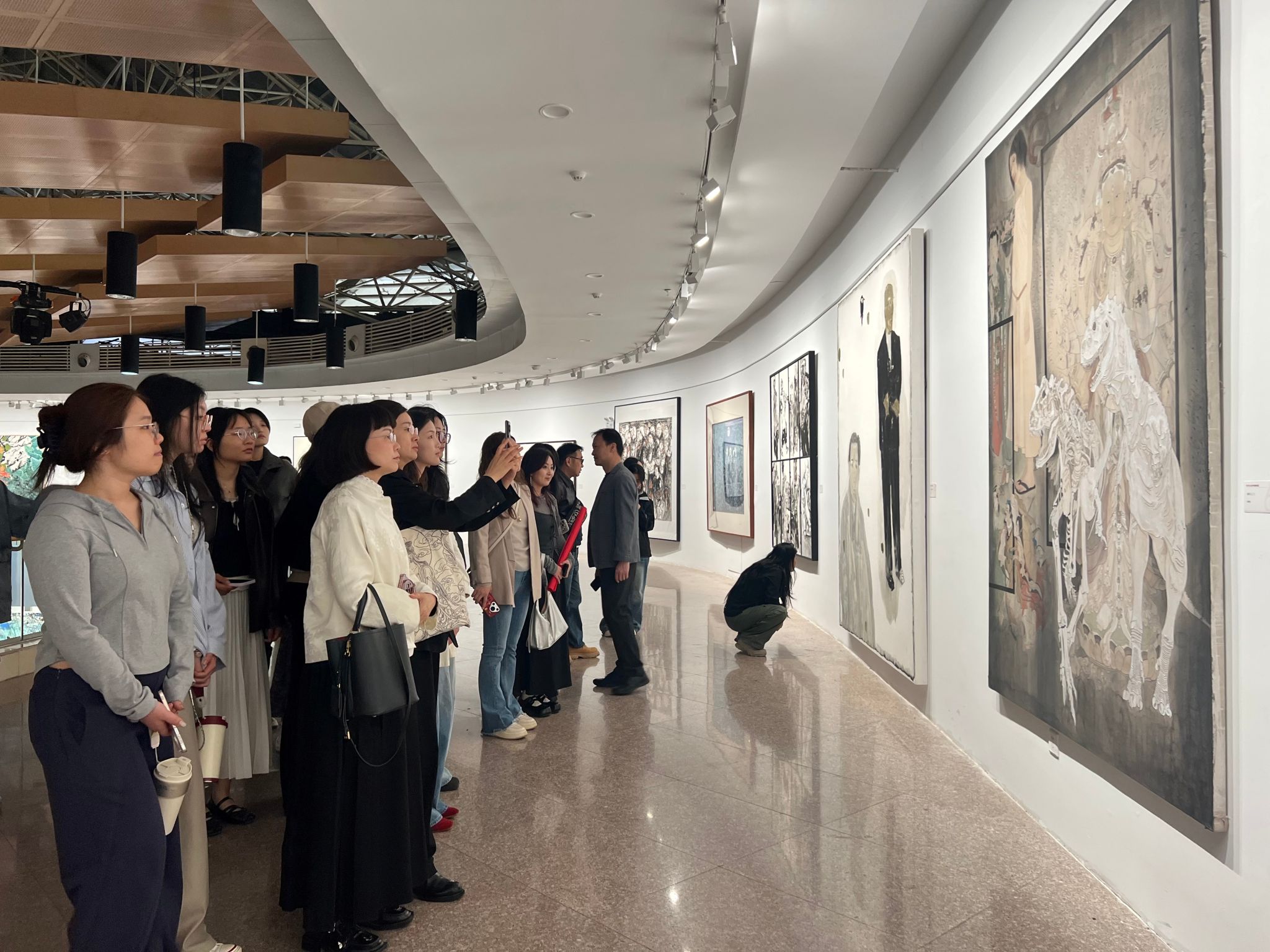 “第六届中国画展览” 由中国美术家协会、中共陕西省委宣传部、陕西省文学艺术界联合会主办,是当代中国画领域规格高、学术性强、具有权威性的全国性大展,全面呈现了近年来中国画创作的整体风貌与前沿水准。作品深植中华优秀传统文化沃土,既坚守笔墨精神、造型传统与意境追求,又紧扣时代脉搏、聚焦现实生活。参观过程中,师生们时而驻足凝视,细细品读画作的笔墨韵味与文化内涵;时而低声交流,探讨作品背后的时代价值与艺术思考。大家纷纷表示,此次观展不仅是一次高水平的专业学习,更是一场深刻的文化洗礼,深刻感受到中国画作为中华审美品格与民族精神重要载体的独特魅力,进一步坚定了文化自信。